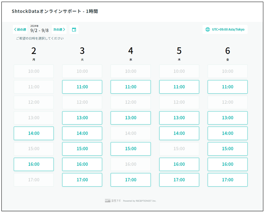 - オンラインサポートは外部サービス「RECEPTIONIST」から予約できます。