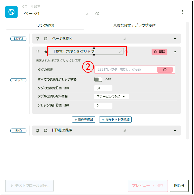 ※ブラウザ操作を行う場合は、ブラウザ操作の設定が完了した後に
