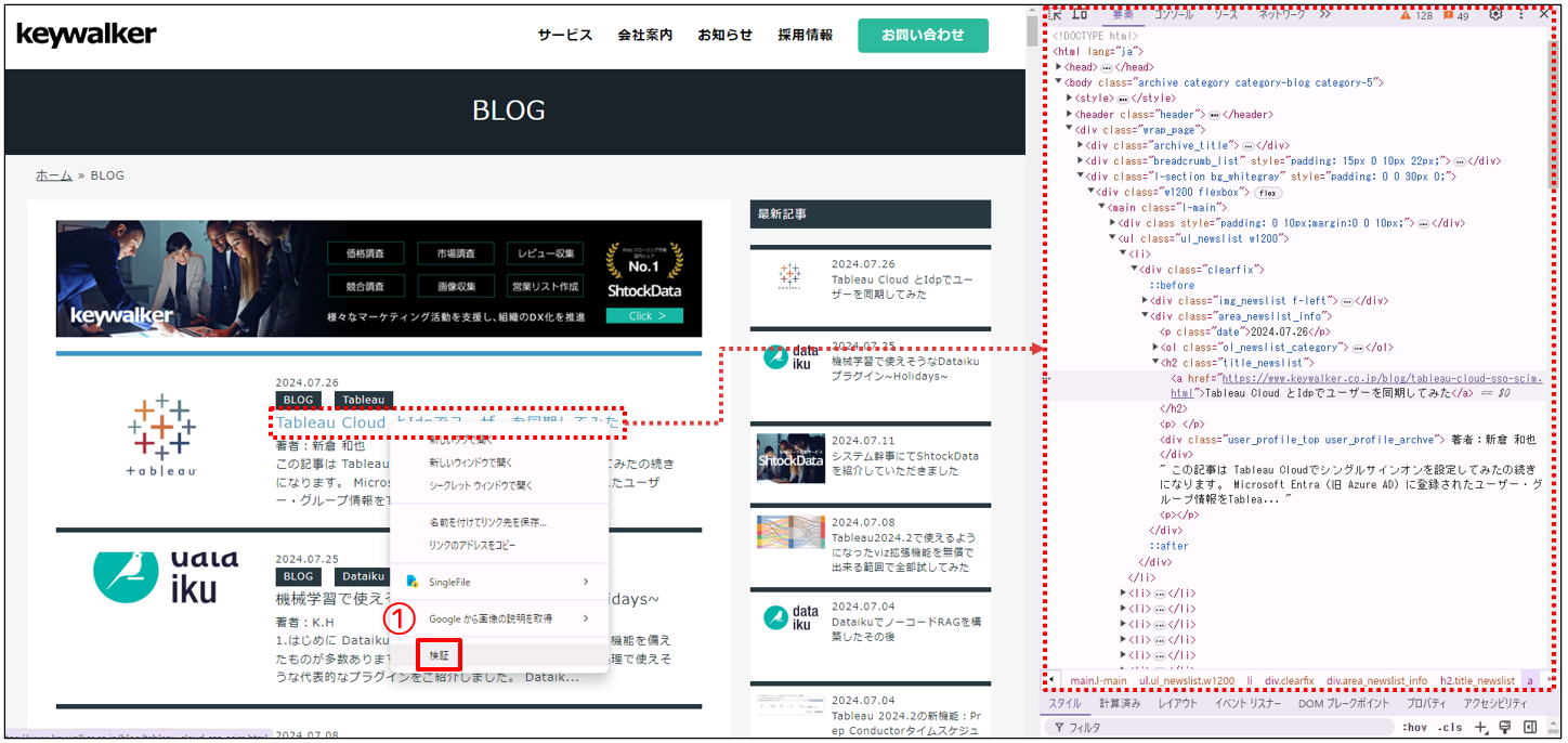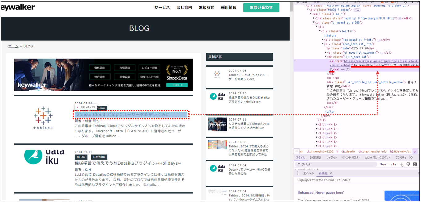 この場合、”Tableau Cloud とIdpでユーザーを同期してみた”というテキスト要素がある部分を見つけます。