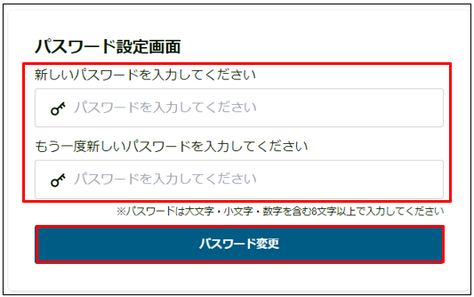 数字・大文字英字・小文字英字を組み合わせた半角8文字以上で設定してください。