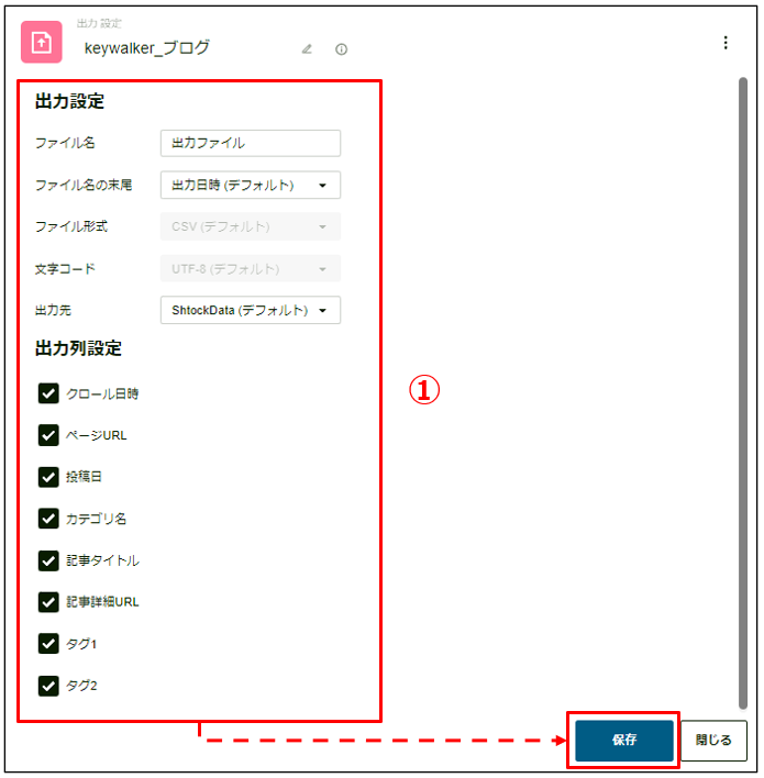 ①出力ファイルの各種設定を行います。