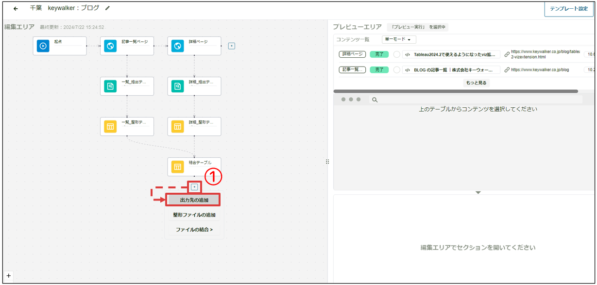 ①[+]を押して、出力先を追加する