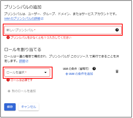 ①GCS上で権限設定を行います。